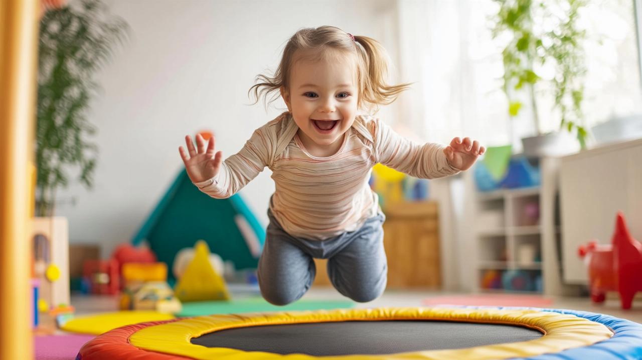 L'utilisation régulière d'un mini-trampoline dans le cadre de la baby gym à la maison offre des avantages considérables pour le développement global des enfants. Ce type d'activité s'inscrit parfaitement dans les six actions clés identifiées pour stimuler les capacités psychomotrices : rouler, s'équilibrer, lancer, ramper, se balancer et sauter. Le trampoline excelle particulièrement dans le travail de l'équilibre et du saut, deux compétences fondamentales pour l'autonomie physique des tout-petits.